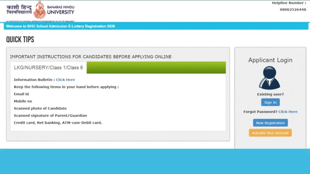 The online application process started on 20 February 2026, and interested candidates can submit their application forms until 20 March 2026 through the official website of BHU. Students and parents who want admission in Central Hindu School (CHS) must carefully read all the instructions before filling out the form.