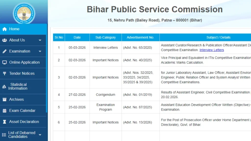 Step 1: Visit the Official Website: First, open your internet browser and go to the official website of the Bihar Public Service Commission (BPSC). On the homepage, you will find various recruitment notifications, announcements, and important links related to examinations.