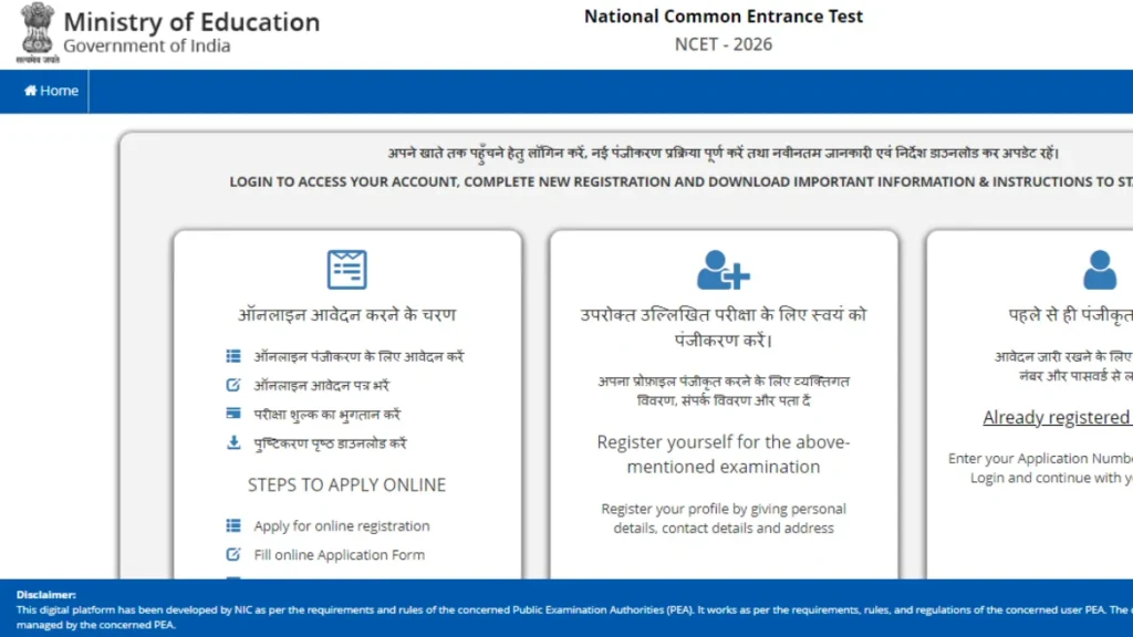 - On the homepage, find the link for NCET Online Form 2026.