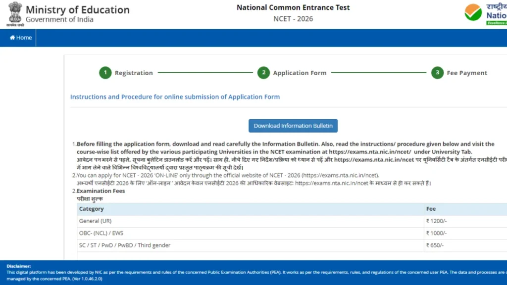 NTA NCET Online Form 2026 : Overview