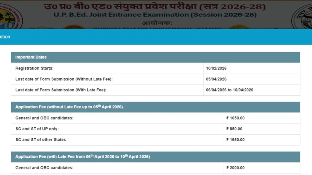 The age limit for the UP B.Ed Online Form 2026 will be determined according to the rules of the UP B.Ed Joint Entrance Examination.